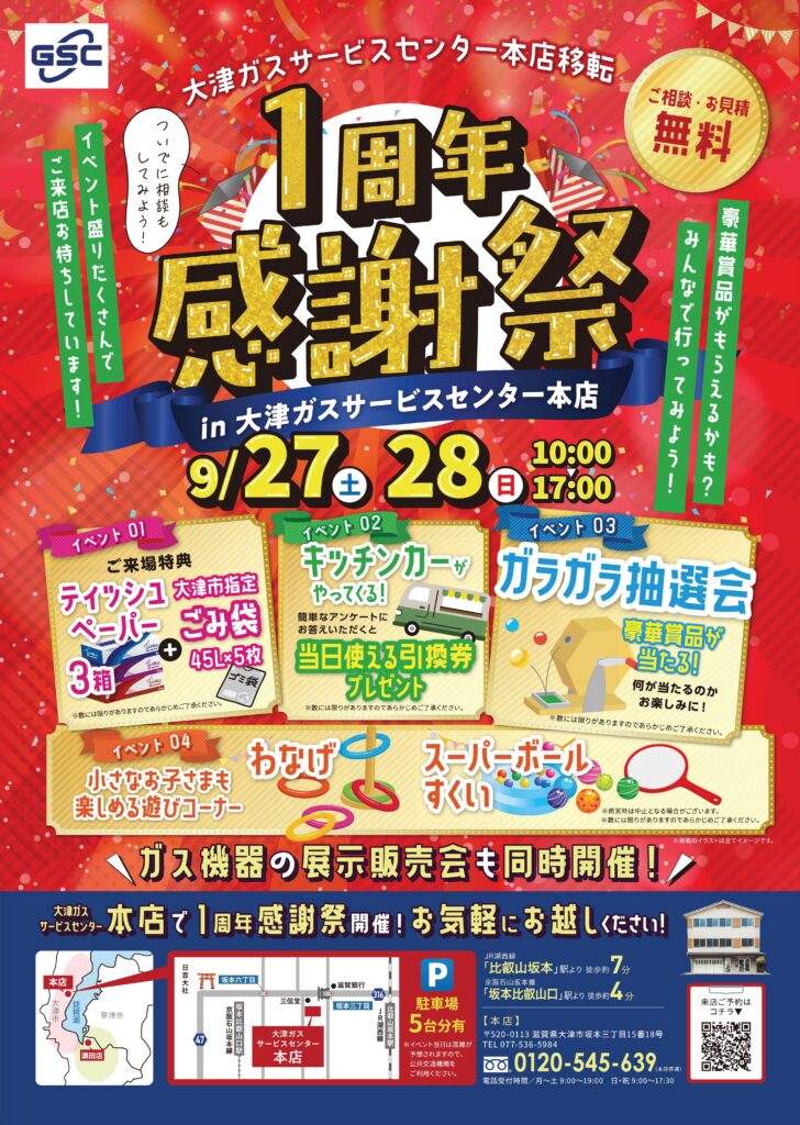 ホーム 選ばれる理由 サービスメニュー 会社概要 採用情報 お知らせ お問い合わせ ガス設備安全点検 イベント予約 NEWS お知らせ ホーム お知らせ お知らせ 2022.09.09 便利機能が加わりました 「ガス設備安全点検予約」が9月12日よりホームページから 申し込みが行えます ガス設備安全点検予約の申し込みはコチラ https://airrsv.net/an-ten/calendar ガス設備調査とは、法令に基づいて、4年に一度、お客さまの ご自宅にお伺いし、ガス設備のガスもれ検査、給排気設備 (ガスふろがま・ガス湯沸器)の調査を行うものです。 ガスを安全に安心してお使いいただくために、必ずガス設備調査を お受けいただいております。 一覧に戻る Related article 関連記事 2025.10.03 お知らせ ✨毎年恒例✨🎉謝恩セール開催のお知らせ🎉 詳細を見る 2025.09.19 お知らせ 🎉✨ 本店 移転1周年記念イベント開催 ✨🎉 詳細を見る 2025.07.28 お知らせ 夏季休業のお知らせ 詳細を見る お問い合わせ CONTACT 0120-545-639 ここをタップで電話発信 受付時間/平日9:00-17:30 お問い合わせフォームへ 受付時間/24時間365日 ガス設備安全点検・イベント予約 受付時間/24時間365日 ガス設備安全点検 イベント予約